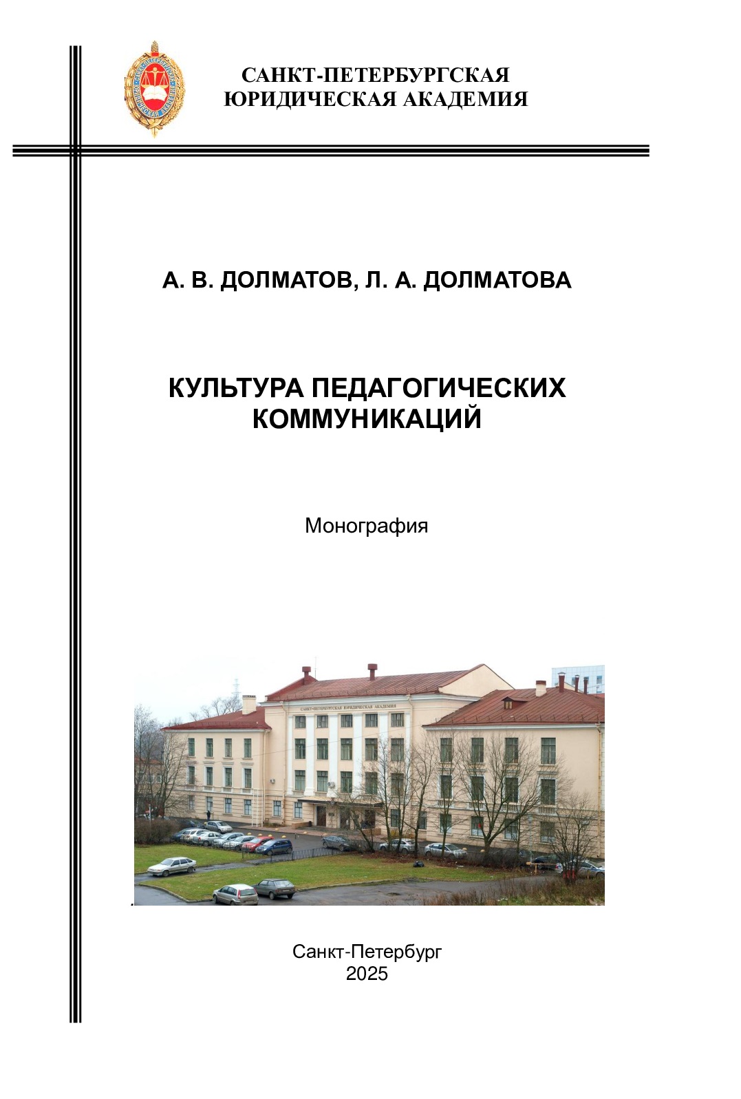 Долматов А. В. Культура педагогических коммуникаций [Текст] : монография / А. В. Долматов, Л. А. Долматова, 2025. - 176 с.