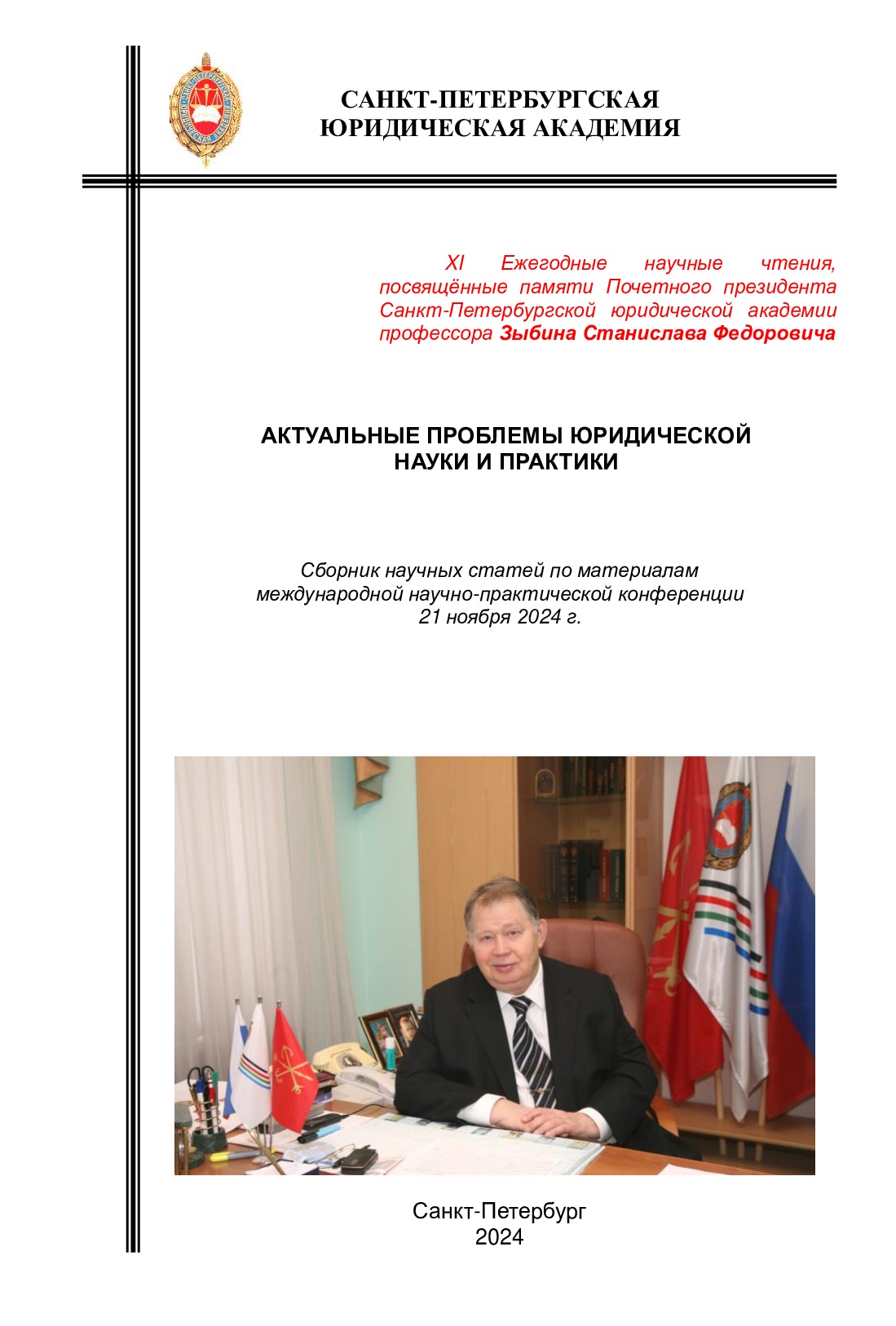 Актуальные проблемы юридической науки и практики. XI Ежегодные научные чтения, посвященные памяти Почетного президента Санкт-Петербургской юридической академии профессора Зыбина Станислава Федоровича [Текст] : материалы международной научно-практической конференции 21 ноября 2024 г. : в 3-х томах. Том 1 : научное издание / Санкт-Петербургская юридическая академия, 2024. - 116 с.