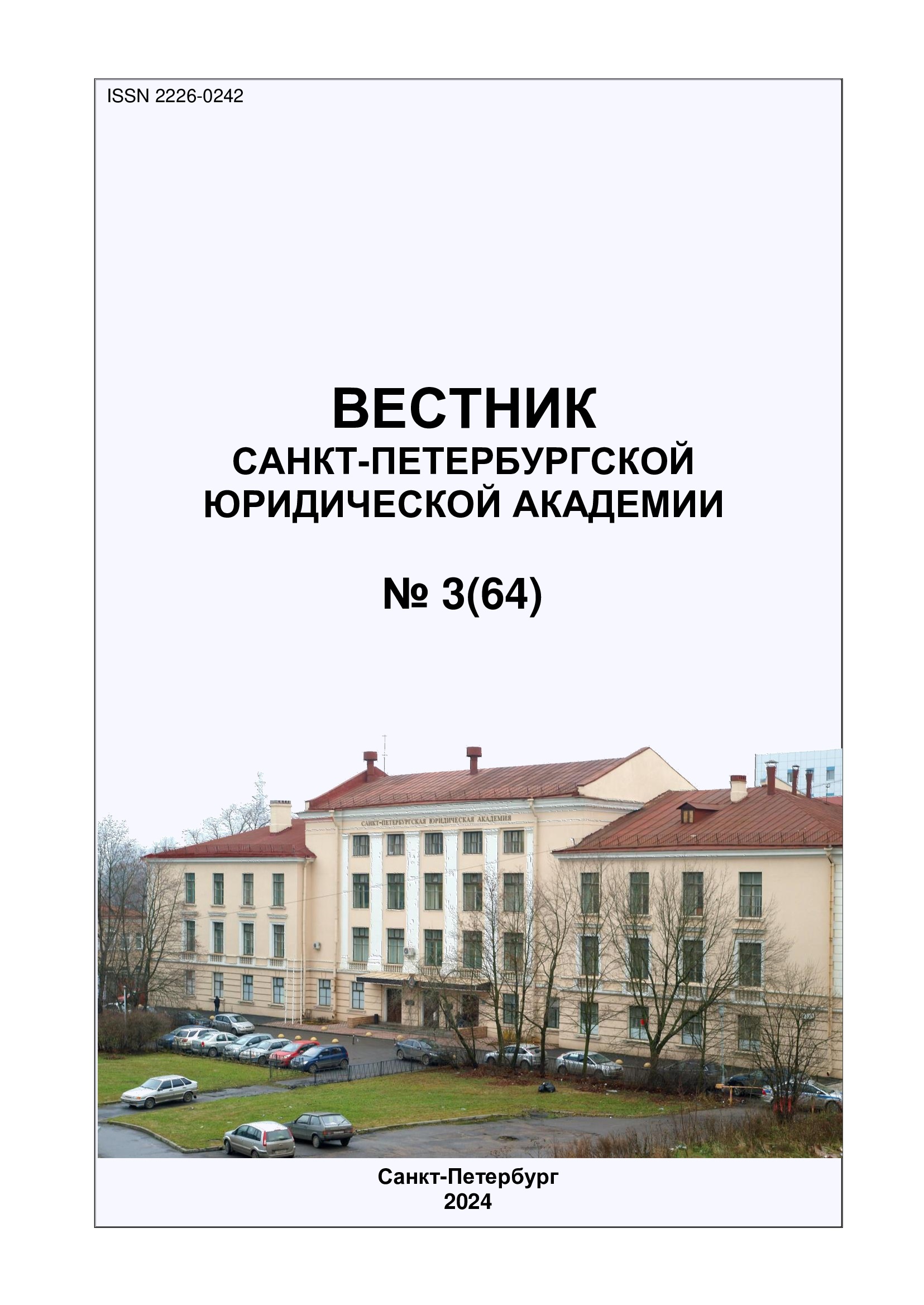 Вестник Санкт-Петербургской юридической академии № 2 (63) 2024 г. [Текст] : научное издание / Санкт-Петербургская юридическая академия, 2024. - 150 с.