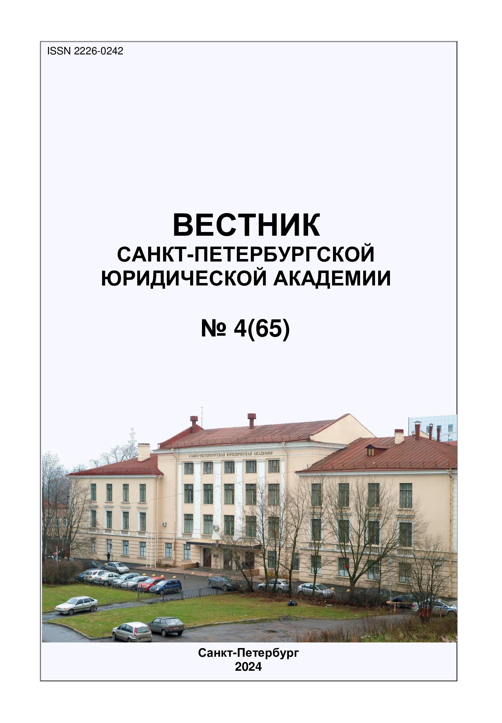 Вестник Санкт-Петербургской юридической академии № 4 (65) 2024 г. [Текст] : научное издание / Санкт-Петербургская юридическая академия, 2024. - 118 с.